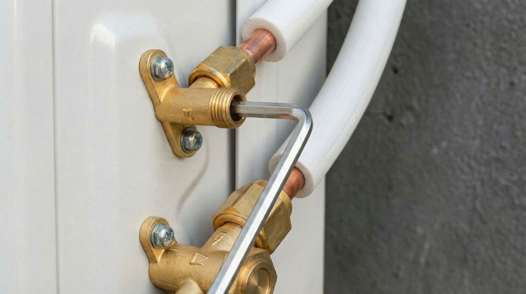 Außeneinheit mit den Rohrleitungen verbinden